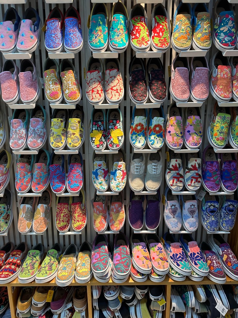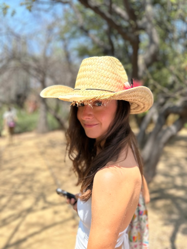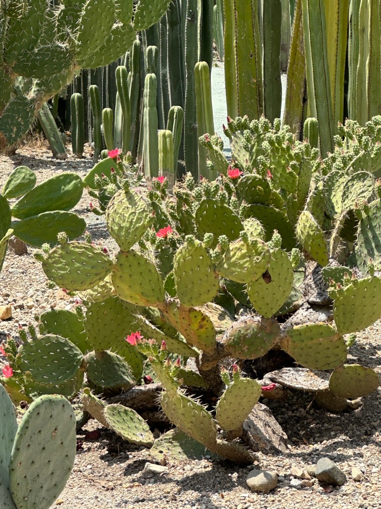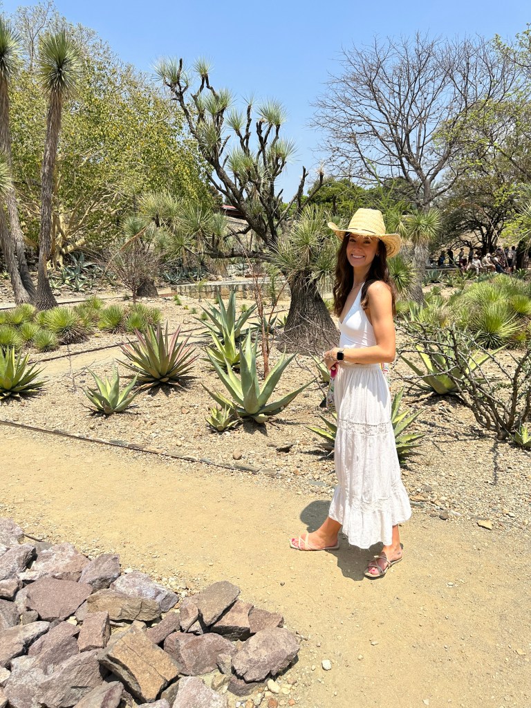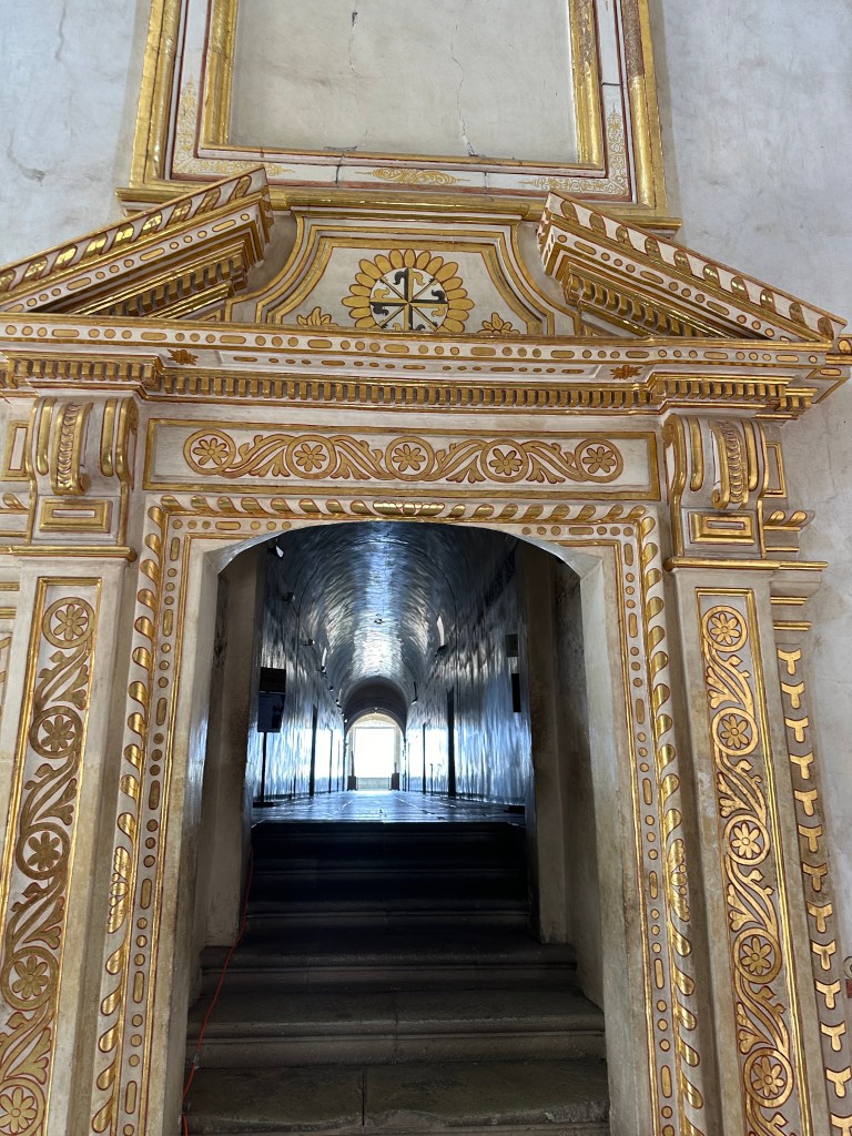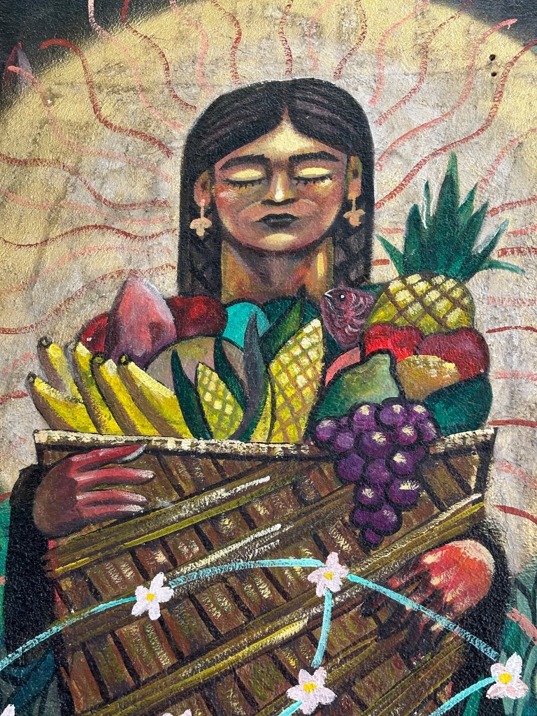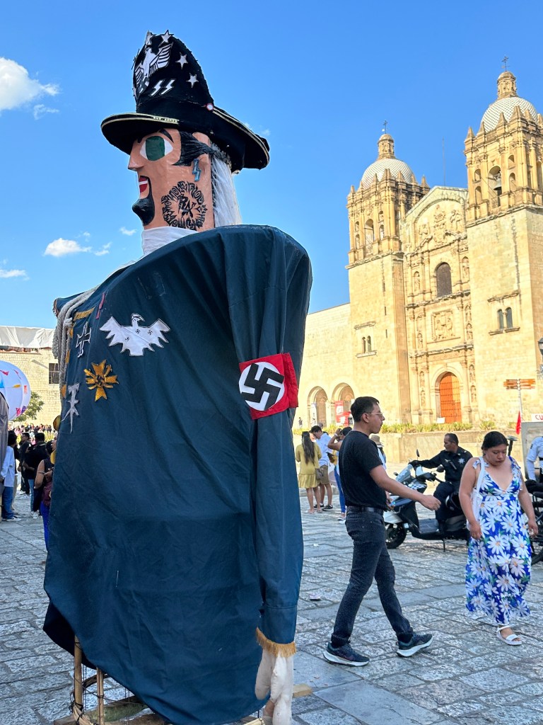 We went to the botanical gardens finally for the 11am tour. You can visit only with tour guides. The English tour was full so we went with the Spanish tour. I didn’t understand much so I decided to just take pictures. I ended up being the mother of an influencer, my favorite photography work. We were there for an hour. Max then went to a café to work and Pogo and I went to the Museo de las Culturas de Oaxaca (Museum of Oaxacan Cultures) in the beautiful monastery buildings adjoining the Templo de Santo Domingo. The most interesting part to me was seeing the treasure found in tomb 7 at Monte Alban, an archaeological site we visited the last time we were here. Dating from the 14th century and discovered in 1932, a king and his sacrificed servants were found with a stash of silver, turquoise, coral, jade, amber, pearls finely carved bones, crystal goblets, a skull covered in turquoise and lots of gold. We spent another hour there. It could have been longer but without a guide, it was not easy to understand any of the displays.