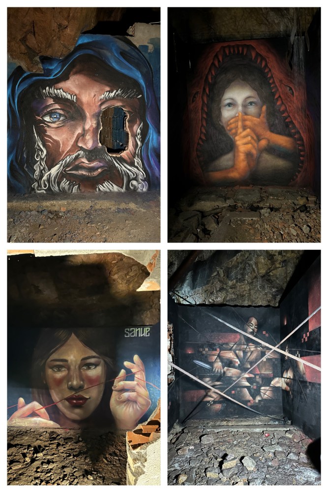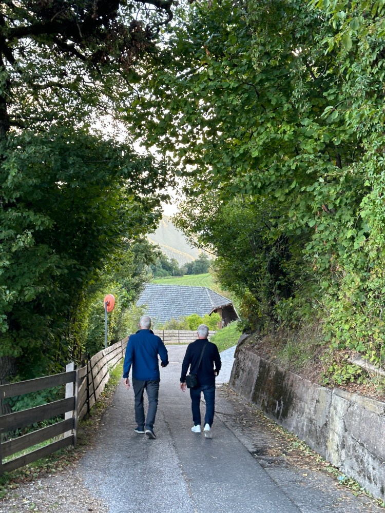 Next morning, Pogo and Derrick went biking then we went to a little cafe for breakfast and sat outside to people watch. We walked to Bunker H, a bunker built by prisoners for the Nazis to hide during WWII, while the people in town were not protected. The tour was done in the dark with 2 lamps only. It was very interesting to see. It was later used by the Italian Army to store weapons during the Cold War. After years of cleaning, it is now use for cultural events. They also had a mural competition a few years ago. We also found out that in the 1920, Mussolini took away the city of Bolzano from Austria and told all the people to either leave or to start speaking only Italian and to change their names for Italian names. That’s why nowadays, every signs or street names are in German and Italian.