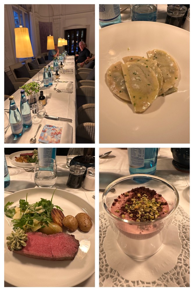 Pogo and I went for a cocktail at the bar then had a glass of prosecco and hors d’oeuvres with the group afterwards and then dinner at the hotel restaurant.