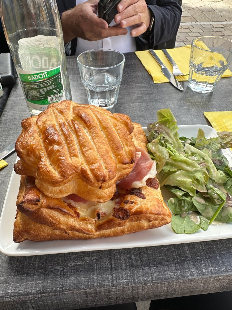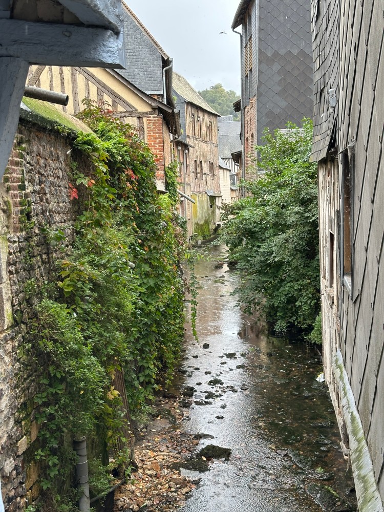 We went to get our rental car then drove all the way to Honfleur with a stop for lunch in a cute little town called Pont Audemer. We had some delicious feuilletés and galettes. The village looked very Gaulois and I was expecting Asterix and Obelix to show up any minute. I was also hoping that Belle would be reading by the fountain. Unfortunately, no luck.