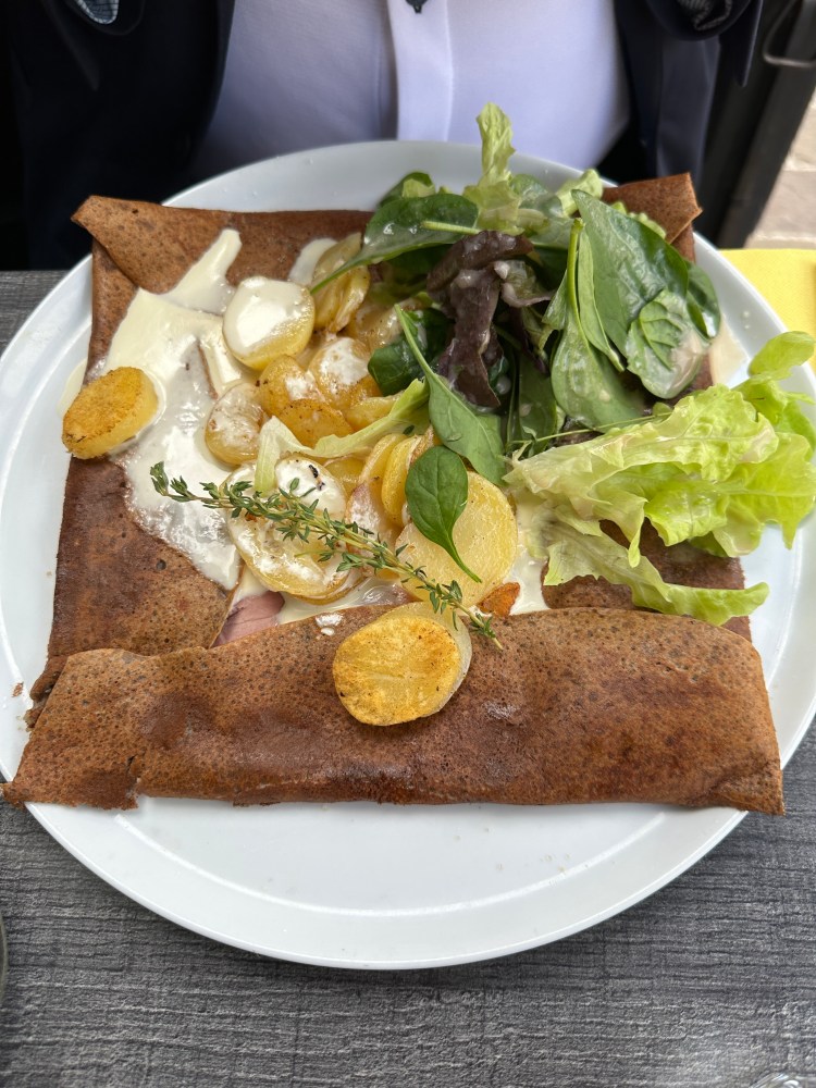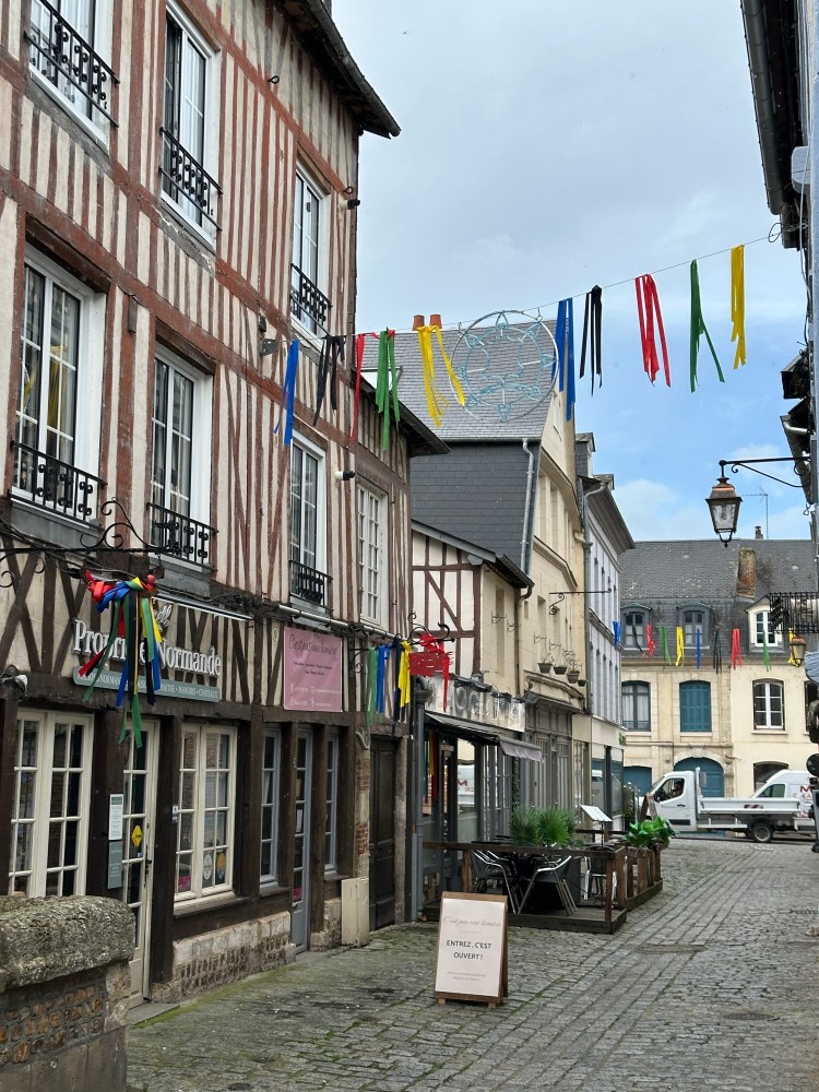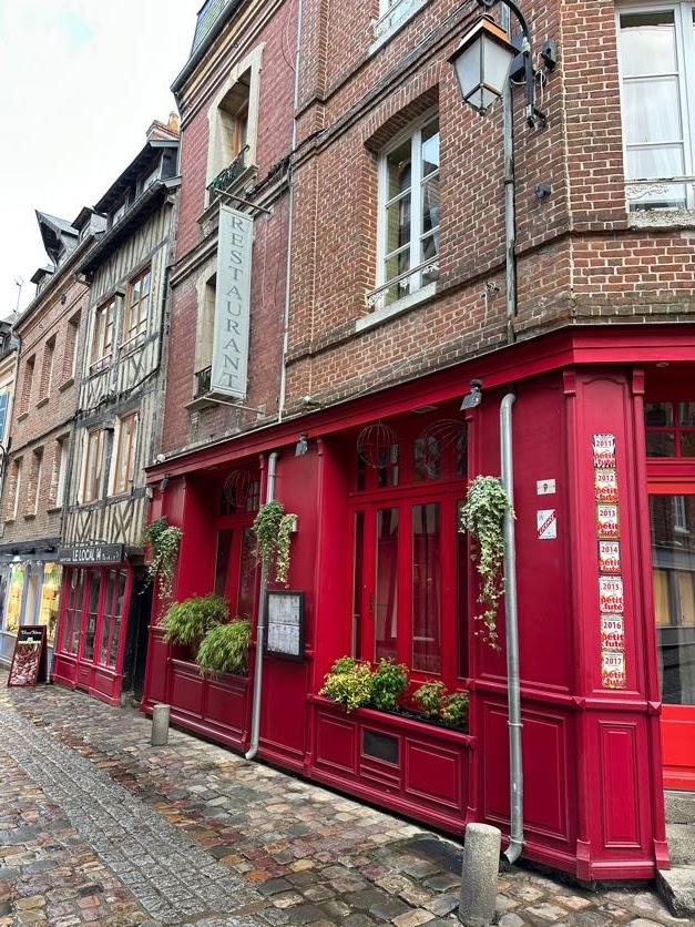 We rested a bit but then went walking into town. Such a beautiful town with a very unique half timbered architecture (Maisons à colombages) as well. It’s a style found mostly in Normandy and Northern France. We met with Derrick and Deidre for dinner at a seafood restaurant then went to bed.