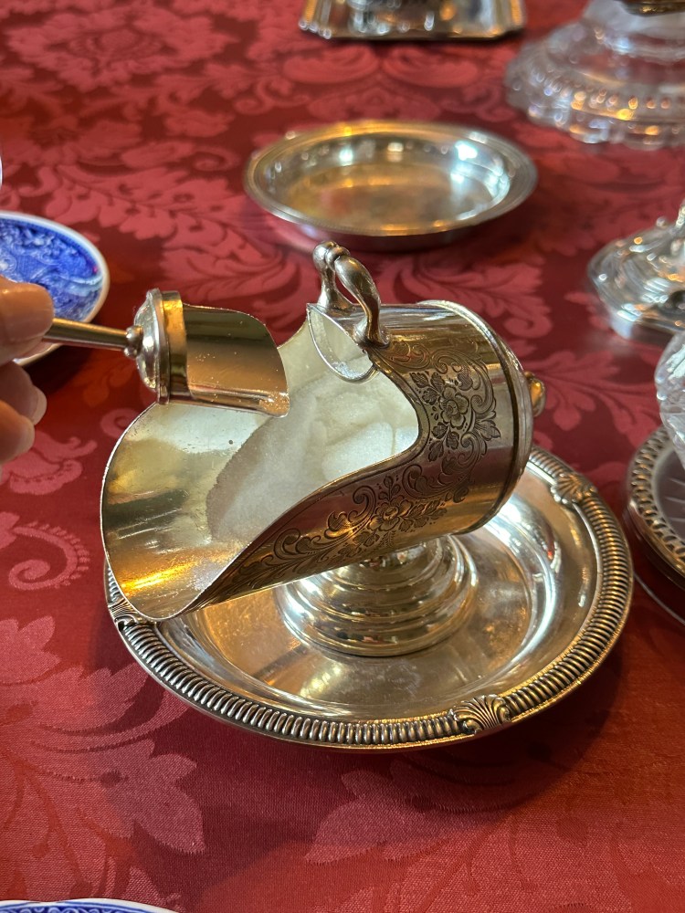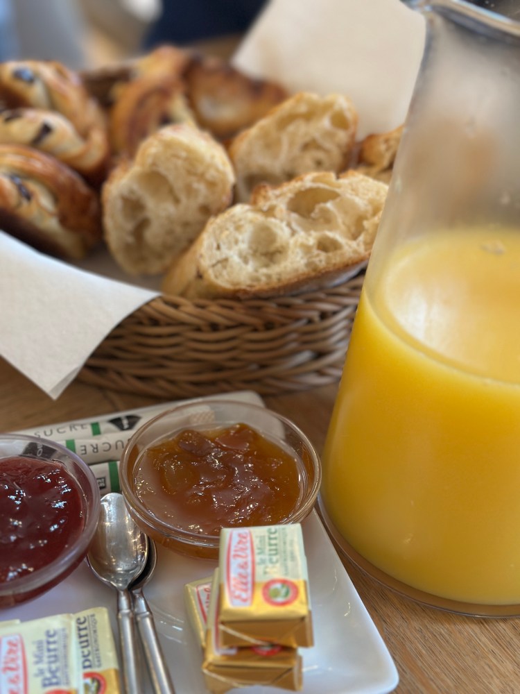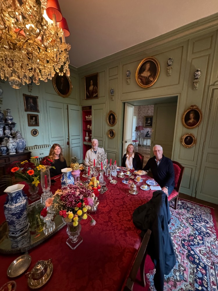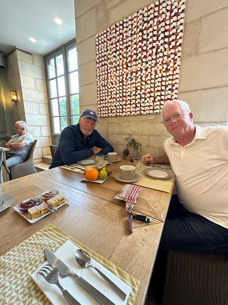 Bernard, our host this morning was the total opposite of his partner. He was talkative, interesting and interested in us, answer all our questions as he was serving us a breakfast fit for kings and queens with part of their silver collection. We were served giant croissants, bread, yogurt and fruits. There was jams, honey and apple juice, all made on the property. Bernard kept asking if we wanted a brioche? orange cake? scrambled eggs? camembert? ham? more coffee? tea? Yes Yes and Yes! We wanted the whole royal treatment!