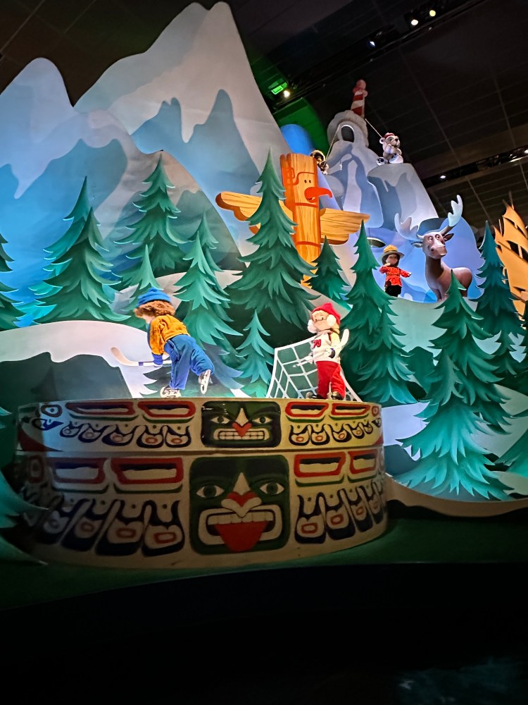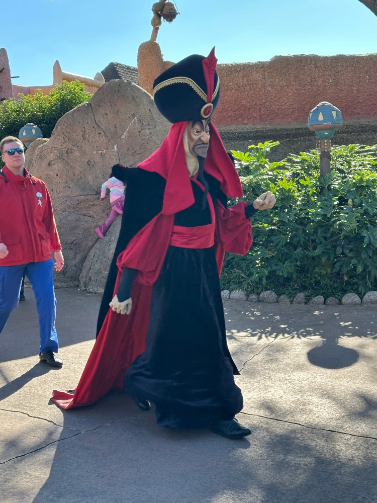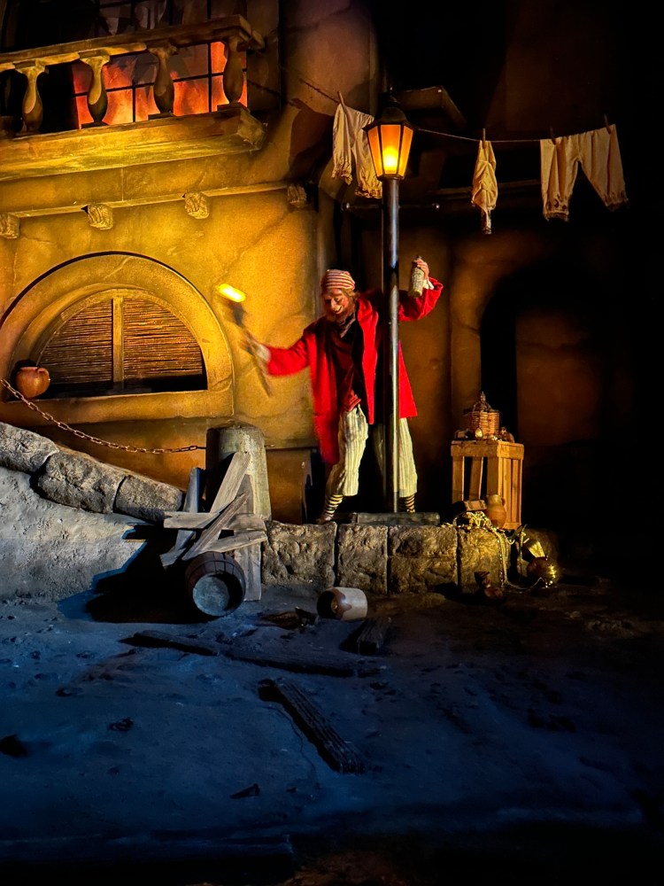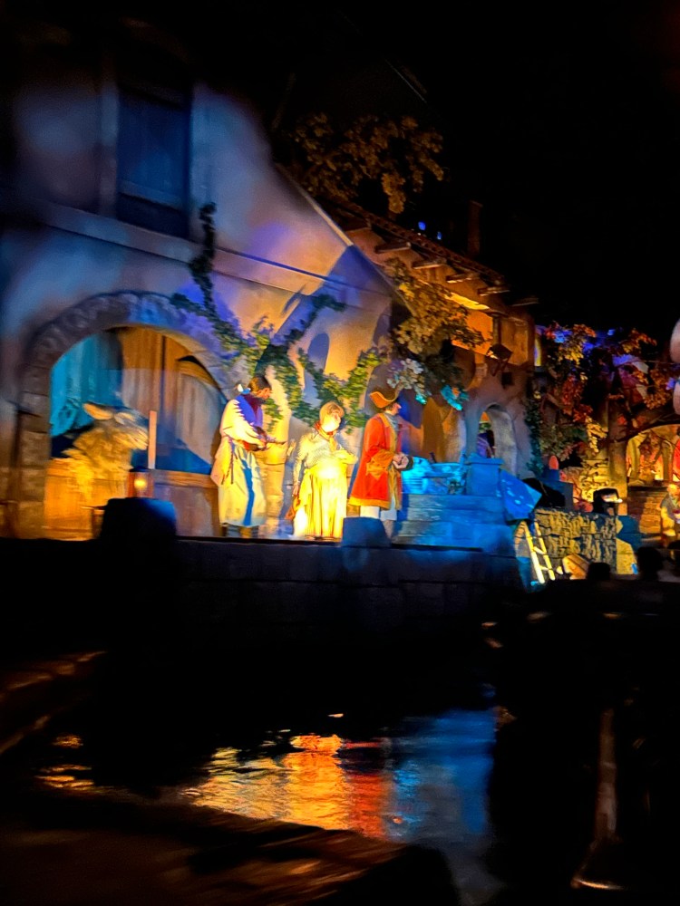 What a difference a day makes. Yesterday was sunny and I actually was hot for the first time on this trip.  Today the occasional rain was back. After bringing our luggage to be stored, we went back to the park and did a few more rides. Among others we went on Pogo’s favorite: It’s a Small World 🙂 and we went twice on my favorite: The Pirates of the Caribbean.  We also went back on Thunder Mountain. It was definitely less crowded so it was nice to just walk around.