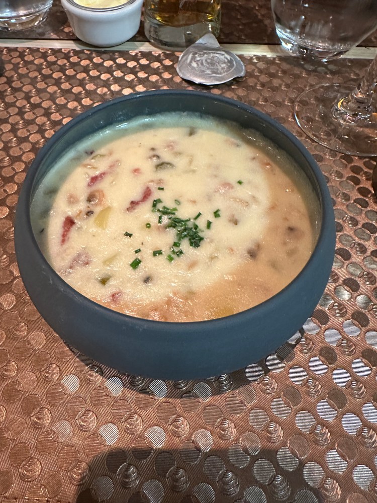 We went for dinner at 8pm, and I had a clam chowder and Pogo had a bouillabaisse.